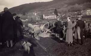un dimanche, au sortie de la messe. La photo ci-dessus montrent la population, venue sur les lieux, dans leurs beaux habits.